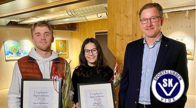 Knivsta kommun delar varje år ut ett ungdomsstipendium till en knivstaungdom som genom sitt engagemang påverkar sin egen och andra ungdomars vardag på ett positivt sätt. Han eller hon ska vara en inspiration och förebild för andra i sin omgivning. Stipendiet är på 5000 kronor och i år delas det ut till Anton Holmqvist från SK Vide samt Elleonora Ali Uddman. Stipendieutdelningen ägde rum på Winter Party den 21 december på Knivsta Centrum för idrott och kultur där kommunstyrelsens ordförande Klas Bergström gratulerade årets ungdomsstipendiater. - Jag vill rikta ett stort tack till Knivstas engagerade ungdomar och då särskilt till Elleonora och Anton som i år uppmärksammas särskilt av kommunen. Det var en ära att få dela ut pris och diplom vid gårdagens Winter Party, säger Klas Bergström, kommunstyrelsens ordförande. Ett stort grattis Anton från oss i SK Vide och tack för de insatser du gör för föreningen och dina kamrater!