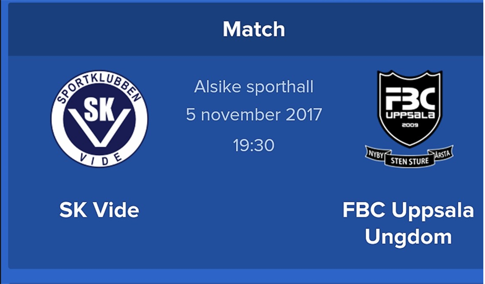 Imorgon kväll väntar ett spännande möte mot FBC Uppsala Ungdom. Ett lag vi mötte även förra säsongen två gånger, 7-0 och 0-0 till deras fördel då. Andra matchen gjorde vi nog den bästa matchen på hela säsongen. Den här säsongen har båda lagen bytt en del spelare och båda lagen är nog väldigt revanschsugna då denna säsong inte börjat på topp för nått av lagen. Vi kunde inte vara mer förbereda än vi är inför matchen. 13/14 stycken har tackat ja till kallelsen och kan till och med bli full pott. I torsdags fick vi bland annat till ett riktigt bra power play på träningen, hoppas vi får visa upp det på söndag. Kan tänka mig att det blir roligt för coach Björn att ställa upp laget denna gång då han har många intressanta tänkbara konstellationer att välja på. Kan vi lyckas med defensiven som vi gjorde förra matchen och få in lite bollar så kan detta bli en lyckad tillställning. FBC har några riktiga vassa erfarna spelare som vi måste se upp med. Ikväll har vi fokus på något helt annat, lagfest på Interpool som garanterat kommer bli en lyckad kväll med många skratt. "när alla tror att vi ska ge oss ger vi lite till när våra faller gör vi alltid vad vi kan för dem vi går frammåt för nu vet vi vad vi vill kommer aldrig ge upp vi har hjärtan av guld" Go Vide!